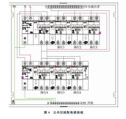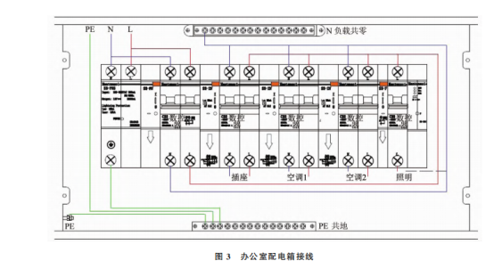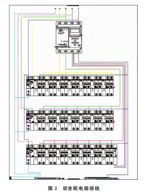 智慧用電監(jiān)管平臺設置每個宿舍由一個空氣開關控制,配電箱接線如圖2所示。每個公室由一個空氣開關控制,配電箱接線如圖3所示。每個公共區(qū)域照明燈由一個空氣開關控制,配電箱接線如圖4所示。可分別對各回路電流、功率進行設定,當回路電流或功率超過限定值時,該回路自動跳閘保護。自由設定宿舍空調、照明及插座等每個回路的開啟和關閉時間,通過手機遠程管理,同時可以按鍵自動控制,也可以通過手動推桿控制通斷電。一旦發(fā)現(xiàn)險情,立即預警,并發(fā)送預警信息至手機應用程序及微機端。通過告警功能、預警機制,及時發(fā)現(xiàn)配電系統(tǒng)設備、周圍環(huán)境的異常情況,以便及時進行檢查與維護,防止意外事故發(fā)生。