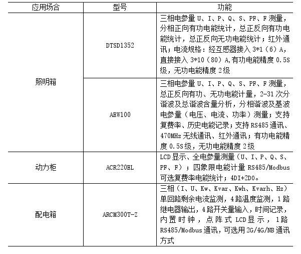 表1 工業能耗管理設備選型表