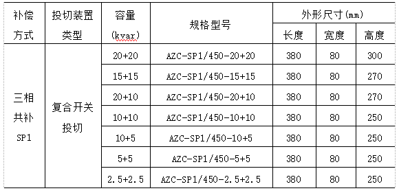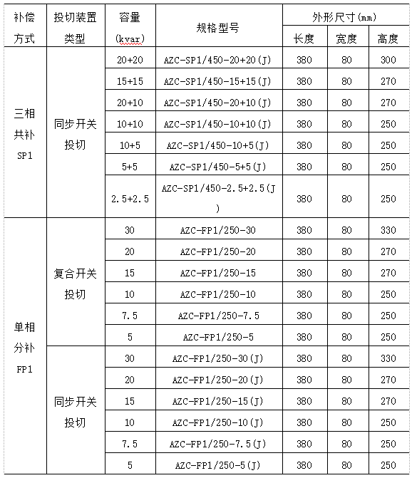 AZC系列智能電容器選型:
