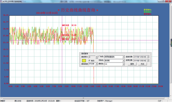 在曲線查詢界面,可以直接查看遙測(cè)參量曲線,包括溫度、濕度、水位、有害氣體、電壓、電流等曲線。