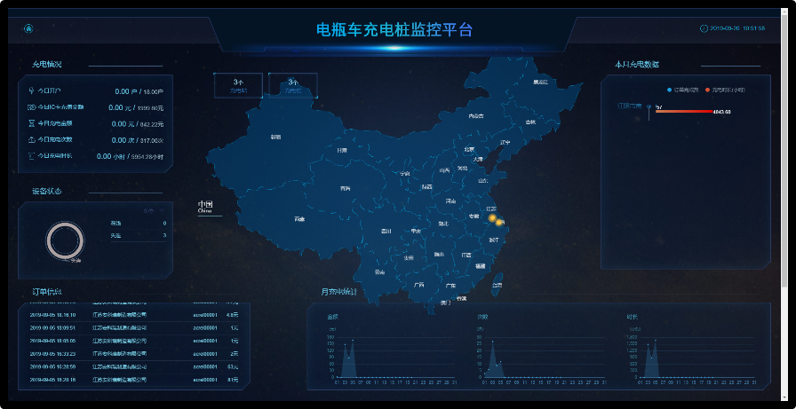 ① 安全預(yù)警 對(duì)平臺(tái)連接的所有充電樁狀態(tài)進(jìn)行監(jiān)視,充電樁發(fā)生異常情況時(shí)可通過(guò)APP、短信及時(shí)向運(yùn)營(yíng)人員發(fā)出報(bào)警信號(hào),及時(shí)消除火災(zāi)隱患。 ② 交易結(jié)算管理 平臺(tái)為運(yùn)營(yíng)方提供充電價(jià)格策略管理,預(yù)收費(fèi)管理,賬單管理,營(yíng)收和財(cái)務(wù)相關(guān)報(bào)表等,支持投幣、刷卡和掃碼充電。