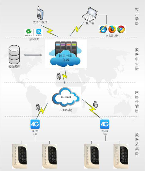 安科瑞電動自行車充電樁通過GPRS模塊與云端進行通信和數(shù)據(jù)交互。系統(tǒng)能夠?qū)﹄妱幼孕熊嚦潆姌兜娜粘顟B(tài)、充電過程進行監(jiān)控;實現(xiàn)充電支付對接:支持投幣、刷卡、微信支付等多種支付方式,保證支付交易過程的完整性,對充電過程中的異常情況進行有效預(yù)警;實現(xiàn)對下游站級平臺的清算、對賬功能。平臺可對接消防物聯(lián)網(wǎng)平臺、小程序等,提供相關(guān)異常數(shù)據(jù),實現(xiàn)電動車充電安全管理的網(wǎng)絡(luò)化、可視化。