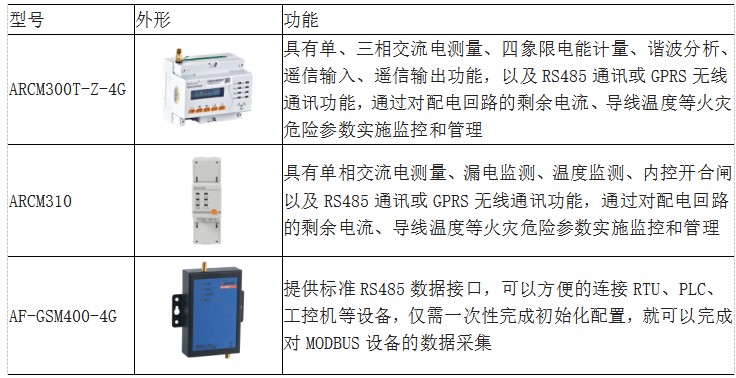 0.4kV以下的TT、TN系統設計的智能電力裝置,具有單、三相交流電測量、四象限電能計量、諧波分析、遙信輸入、遙信輸出功能,以及RS485通訊或GPRS無線通訊功能,通過對配電回路的剩余電流、導線溫度等火災危險參數實施監控和管理。