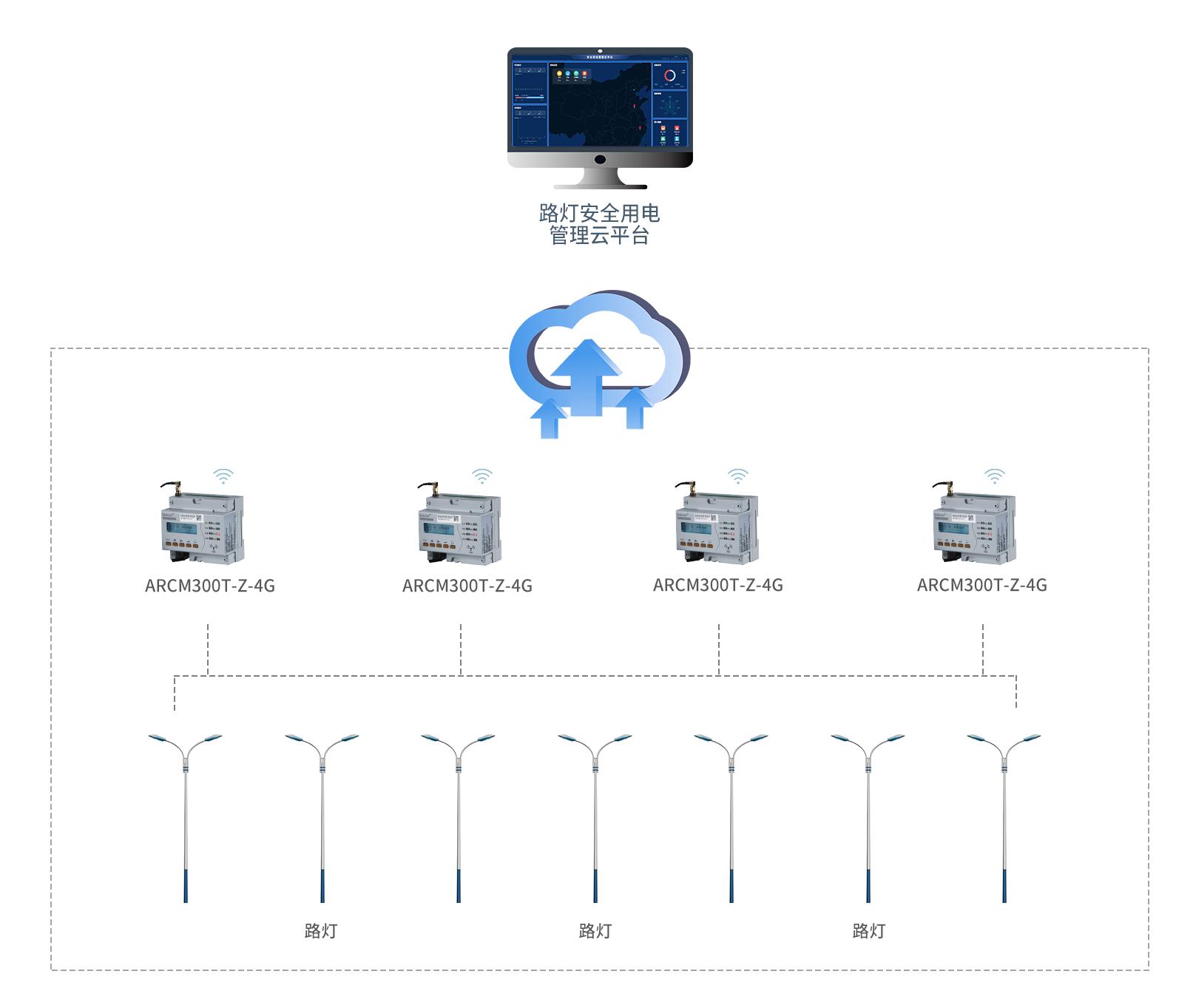ARCM310儀表,監控每個路燈的電壓、電流等電參量進行預警和報警,也可設置定時通斷時間并遠程控制路燈通斷