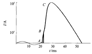 如圖2所示,當發生短路故障時,傳統空氣開關在電流升至C點時才能動作,且無法瞬時切斷電流,而固態開關則可以在電流升至B點時即瞬間切斷短路電流。