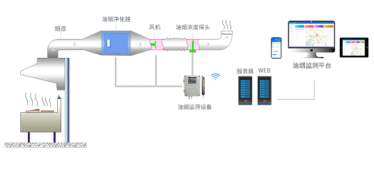 油煙監控主機是現場的管理設備,實時采集油煙濃度探測器和工況傳感器的信號,進行數據處理,通過有線或無線網絡通訊將數據傳輸到服務器平臺。同時,對本地數據進行存儲,監控現場設備狀態,提供人機操作界面。