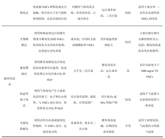 2)目前我國餐飲油煙凈化設備主要針對油煙顆粒物的去除,但對于油煙VOCs的末端