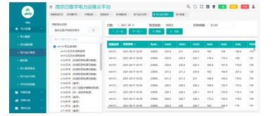 電力數據顯示變電所各回路的電力數據和曲線,包括電流、相電壓、線電壓、頻率、功率因數、有功功率、無功功率、視在功率等參數,并可導出圖表。