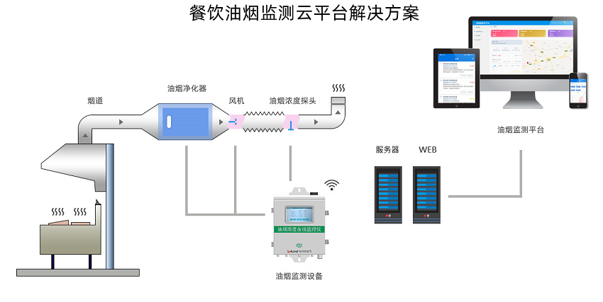 可分別監測凈化前和凈化后油煙濃度,支持凈化效率的自動計算;
