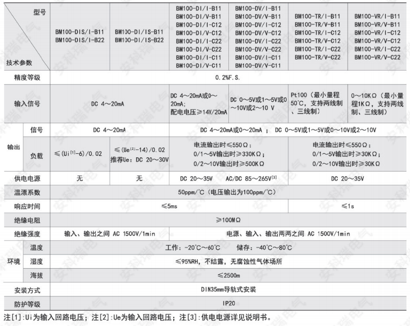 BM100系列信號隔離器可以對電流、電壓等電量參數或溫度、電阻等非電量參數進行快速精確測量,經隔離轉換成標準的模擬信號輸出。既可以直接與指針表、數顯表相接,也可以與自控儀表(如PLC)、各種A/D轉換器以及計算機系統等設備配接,