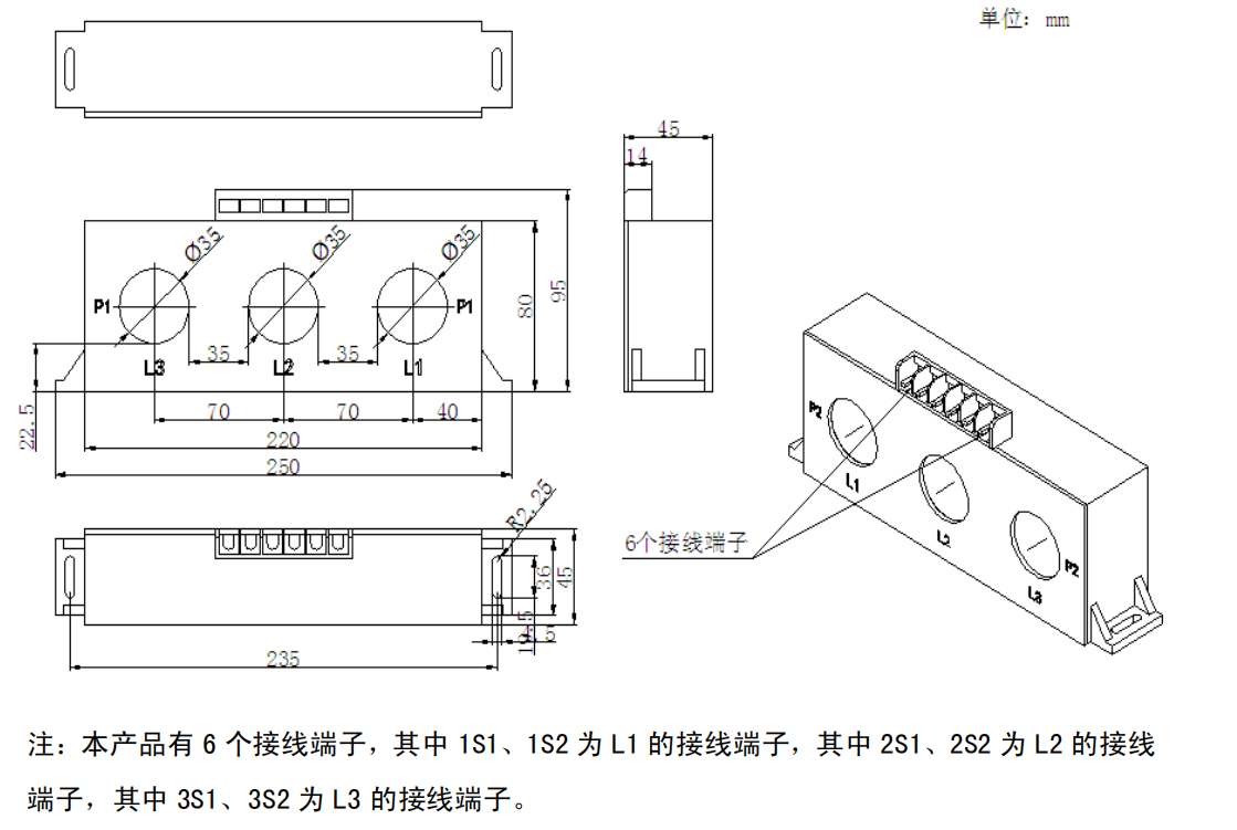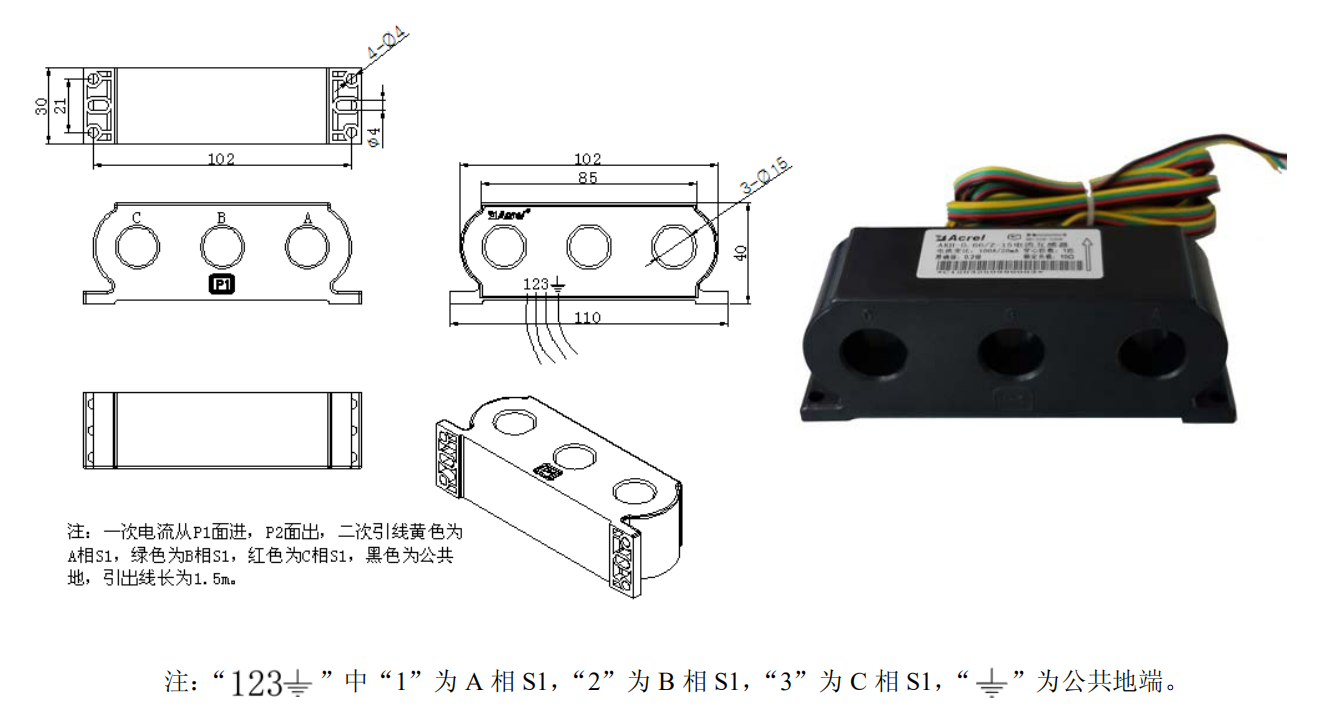 產品外形美觀,接線方便。外殼材料采用 PPT,作為交流電流信號采集元件,一般與