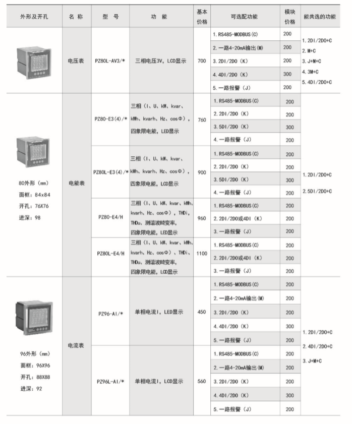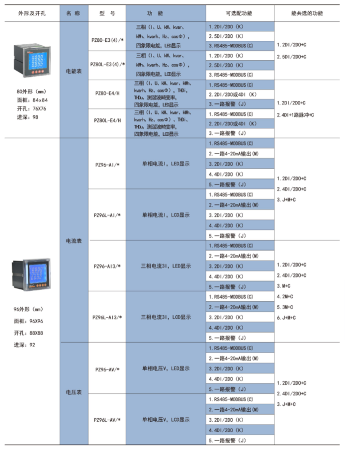 該系列儀表采用交流采樣技術,能分別測量電網中的電流、電壓、功率、功率因數(shù)和電能等參數(shù)??蓭S485通訊接口、模擬量數(shù)據(jù)轉換、開關量輸入/輸出等功能,實現(xiàn)電力參數(shù)、電氣元件工作狀態(tài)的遠程傳輸,便于后臺監(jiān)控系統(tǒng)集中檢測。
