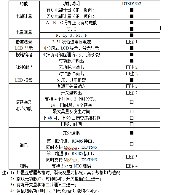 技術要求:輸入電壓3*220/380V;輸入電流1.5(6)A;接線方式三相四線;互感器接入;2路開關量輸入、2路繼電器輸出;準確度1.0級。